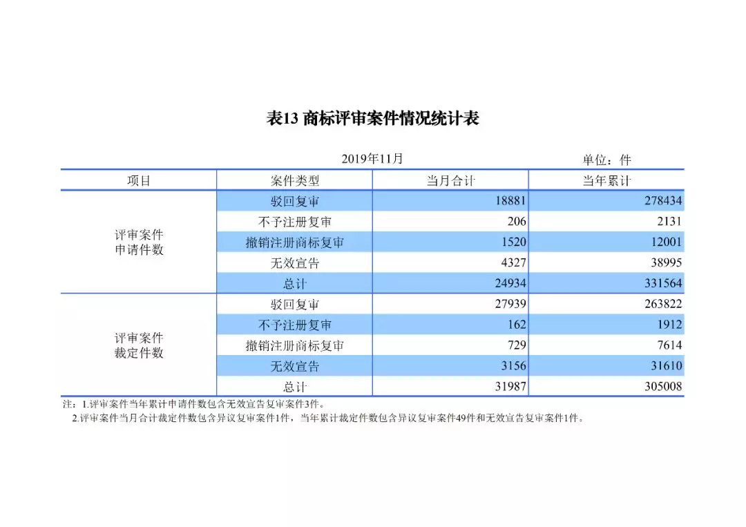 1-11月,我局收到各類商標評審案件申請33.2萬件, 結案30.5萬件。