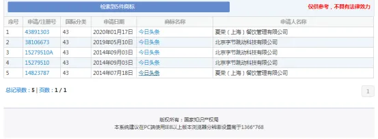 最初餐飲43類今日頭條商標不是字節跳動公司申請的,后來經過一系列的撤三、無效宣告最終取得43類的所有權。目前是在北京字節跳動科技有限公司名下的,不同行業原則上是互不影響的,主要看今日頭條是否為馳名商標,馳名商標保護力度會更大。根據字節跳動公司的知識產權重視程度肯定不會坐視不管的,否則也不會費勁千辛萬苦把一個非主行業的標給爭取下來。