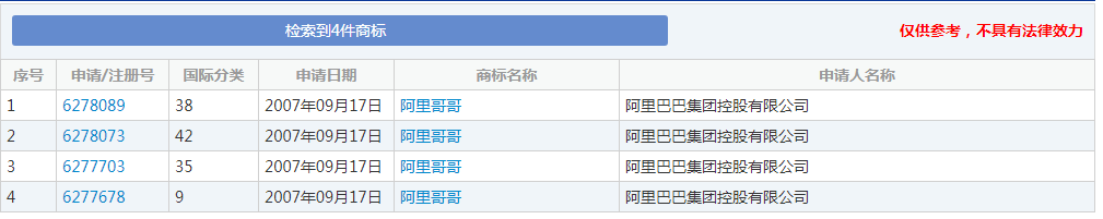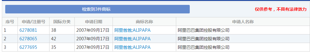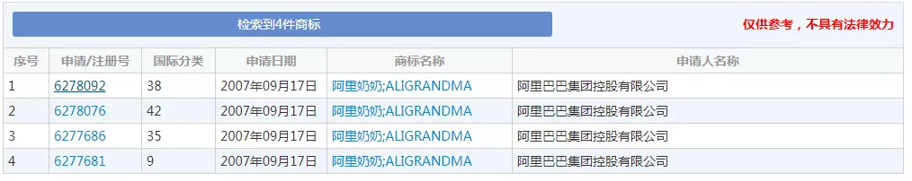 我們的陶女神如此給力,馬云爸爸也不堪示弱。“阿里巴巴”集團為保護商標,基本把所有相關的衍生詞語都申請了。包括“阿里爸爸”、“阿里爺爺”、“阿里奶奶”、“阿里哥哥”等商標,直接弄了個幾代同堂,阿里系商標家族也就此誕生。