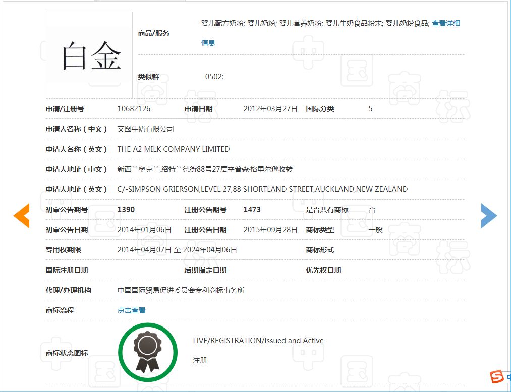 經復審認為:申請商標指定使用的“醫用營養飲料;嬰兒奶粉”等商品與引證商標一、二核定使用的“人用藥;嬰兒奶粉”等商品屬于同一種或類似商品。申請商標為“老白金”,與引證商標一、二在文字構成、呼叫等方面相近,構成近似標識。申請商標與引證商標一、二指定使用在上述同一種或類似商品上,易使消費者對商品的來源產生混淆誤認。申請商標與引證商標一、二已構成使用在同一種或類似商品上的近似商標。申請人提及的其他商標的注冊情況不能成為本案申請商標予以初步審定的當然理由。申請人提交的證據不能證明申請商標經使用與其建立唯一對應關系,從而可以與引證商標一、二相區分。