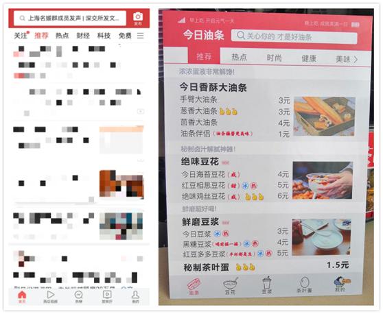左圖為今日頭條APP主頁,右圖來自大眾點評網友